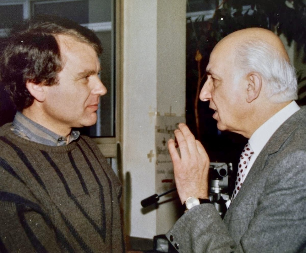 Dieser Mann heißt Dr. Achim Besgen. Er war mein Schulleiter auf dem Gymnasium. Da oben auf dem Bild rechts, das ist er. Das Bild muss im Jahr 1984 aufgenommen worden sein. Damals war ich 18, ich stand kurz vor dem Abitur und er kurz vor der Pensionierung. Die kam dann im Jahr darauf, unmittelbar bevor ich mein Abi in der Tasche hatte. Wir Schüler, mindestens 200-köpfig versammelt auf dem Schulhof, verabschiedeten unseren Direktor am offenen Fenster des Lehrerzimmers im ersten Stock mit einem Lied zur Melodie von „Hoch auf dem gelben Wagen“. Die eigens auf ihn zugeschnittenen Verse weiß ich nicht mehr, dabei sollte gerade ich mich erinnern. Denn ich habe sie damals geschrieben. Okay, ich war ja auch Redakteur der Schülerzeitung. Schreiben, das war meins.